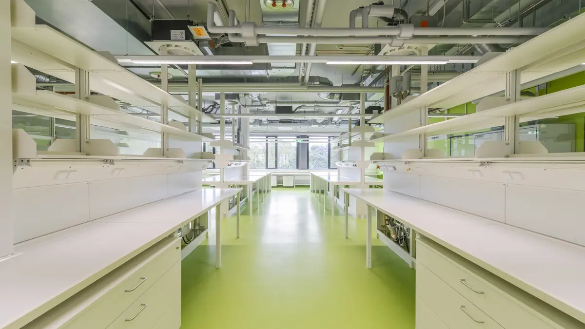 Die Labor- und Büroflächen sind den jeweiligen Einrichtungen klar zugeordnet, angepasst an die jeweiligen Arbeitsweisen und Forschungsschwerpunkte. In den klassisch zonierten Laborbereichen des B CUBE werden Naturphänomene auf molekularer Ebene untersucht und Materialien mit neuartigen Eigenschaften entwickelt, während im DZNE in innovativen Großraumlaboren an der Prävention und Therapie neurodegenerativer Erkrankungen geforscht wird.